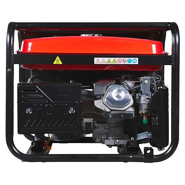 Бензиновый генератор можно подключить к автоматике резервного ввода через коннектор на передней панели. При таком формате работы электронный блок фиксирует отключение напряжения в основной сети и запускает агрегат, переводя на него всех потребителей. Топливный бак на 25 л позволяет ему проработать в течение 8 часов при нагрузке около ¾. После возобновления стационарного электроснабжения установка выключается.