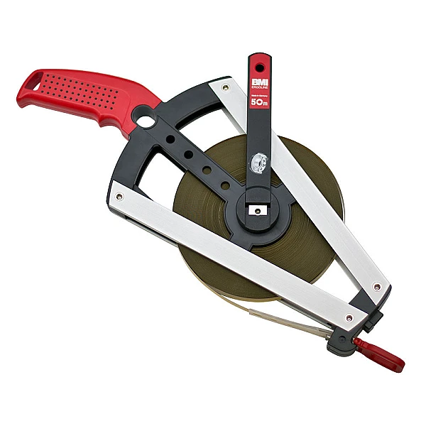 Крепление ленты рулетки BMI ERGOLINE 50 M осуществляется к специальному устройству, расположенному в передней части прибора. За счет этого конструктивного решения, нет риска попадания ленты в механизм сматывания.
