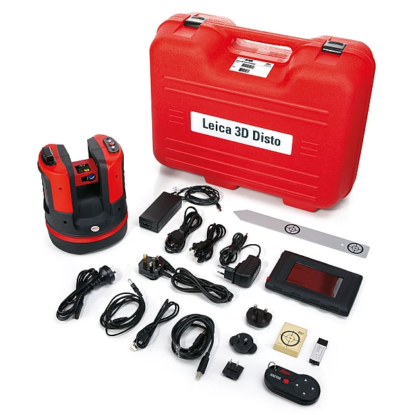 Leica 3D Disto оснащен пультом дистанционного управления и контрольной панелью – планшетом с сенсорным экраном. Они могут быть связаны при помощи кабеля или по радиоканалу. В прибор встроен калькулятор для проведения небольших расчетов. Память планшета достигает 500 Гб. В комплекте с дальномером идут специальные маячки, программное обеспечение, удобный кейс и огромная инструкция.