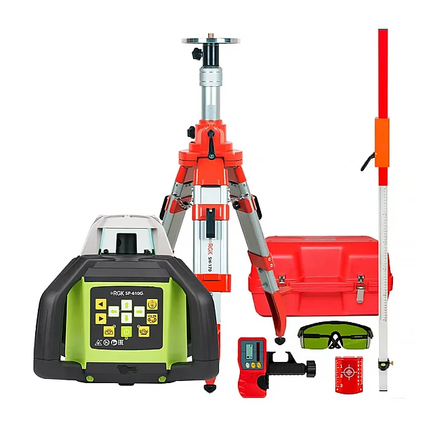 Комплект: ротационный нивелир RGK SP-610G + штатив, рейка