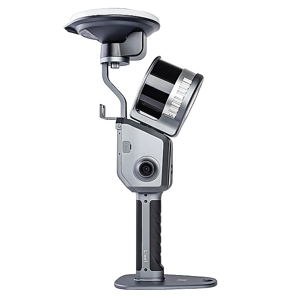 Оснащенный 32-канальной LiDAR-головкой HESAI, которая вращается одновременно в двух плоскостях, SLAM-сканер обеспечивает сбор данных об окружающих объектах, находящихся на расстоянии до 300 м, со скоростью 640 000 точек/с. При этом распознавание цветов обеспечивают двойные панорамные камеры с разрешением 48 Мп.