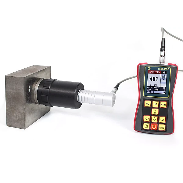 Устройство обеспечивает перпендикулярное положение датчика, облегчая работу оператора. Сохранение перпендикулярности датчика к контролируемой поверхности – одно из основных условий для получения корректных результатов измерений твердости.