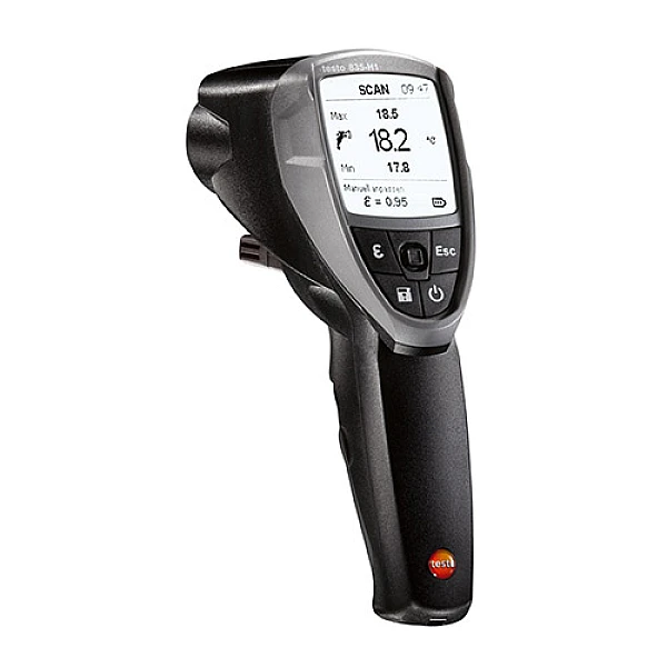 Инфракрасный пирометр Testo 835 H1 – инфракрасный бесконтактный прибор для измерения поверхностной температуры различных объектов. Отличительной особенность модели является встроенный датчик для определения влажности поверхности – таким образом, Testo 835 H1 сочетает в себе функции качественного бесконтактного пирометра и гигрометра.