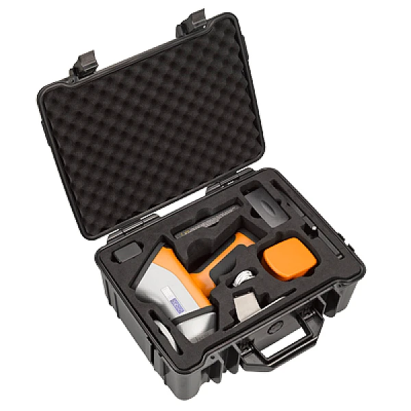 Рентгенофлуоресцентный анализатор X-MET 8000 стал еще меньше и удобнее. Вес с аккумуляторной батареей не превышает 1.5 кг. В комплекте с кейсом и аксессуарами – 5 килограмм. Уменьшенные размеры корпуса при прежнем размере дисплея 4,3 дюйма. Близкое расположение инфракрасного датчика образца к измерительному окну обеспечивает простой анализ объектов малых размеров (проволоки стружки и пр.).