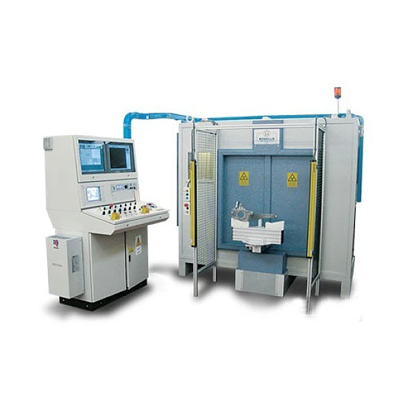 Камера радиационной защиты выполнена из стали и свинца в соответствии с международными стандартами по защите окружающей среды от рентгеновского излучения. Дополнительная радиационная защита не требуется. Камера оснащена поворотной автоматической дверью с двумя загрузочными столами. Для контроля рабочих процессов на передней стене камеры предусмотрено просмотровое окно. На задней стене камеры расположена большая дверь для технических нужд. Перемещение камеры осуществляется с помощью погрузчика, что позволяет устанавливать ее в любом месте цеха.
