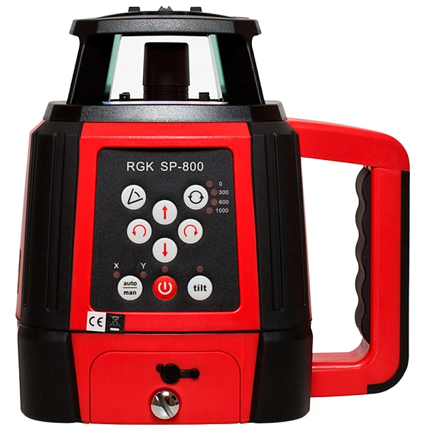 В комплекте с нивелиром RGK SP800 наряду с приемником лазерного излучения находится пульт дистанционного управления, позволяющий управлять нивелиром на расстоянии. Для установки нивелира на профессиональный штатив предусмотрена резьба 5/8, позволяющая также закрепить его на распорной штанге илу упоре. Ударопрочный обрезиненный корпус обеспечивает надежную защиту от пыли, влаги, перепадов температур и вибраций. Функция ручной настройки позволяет отключить компенсатор, и установить нивелир в необходимое горизонтальное или вертикальное положение для проецирования наклонных плоскостей.