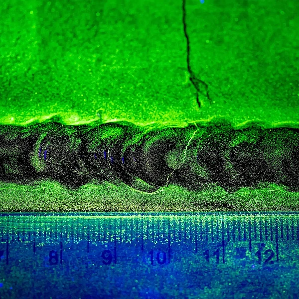 Далее следует визуальная расшифровка индикаторных линий — определение локализации, ориентации и протяженности поверхностных и подповерхностных дефектов. Полученную картину также можно сравнить с контрольными образцами для магнитопорошковой дефектоскопии.