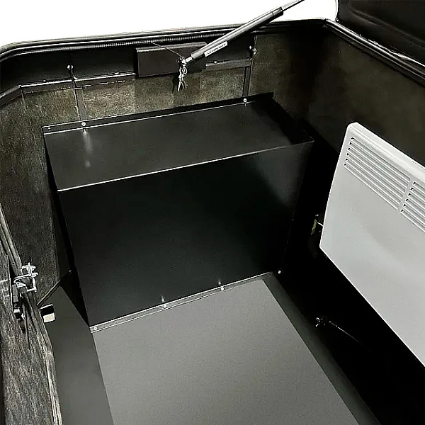 Крышка кожуха легко открывается одной рукой, надежно фиксируется и позволяет безопасно обслуживать генератор. Изнутри крышка отделана пожаробезопасным материалом для дополнительной шумоизоляции.