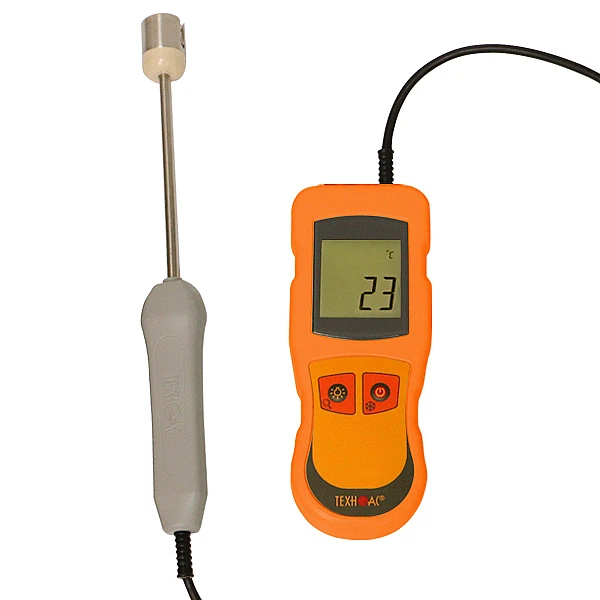 Термометры контактные цифровые "ТК-5.01ПТС" предназначенные для измерения температуры поверхности твердых тел путем непосредственного контакта зонда с объектом измерения. Термометры контактные цифровые состоят из электронного блока и несменного поверхностного зонда. В качестве термочувствительного элемента в зонде используются преобразователи термоэлектрические (ТП) с НСХ по ГОСТ Р 8.585.